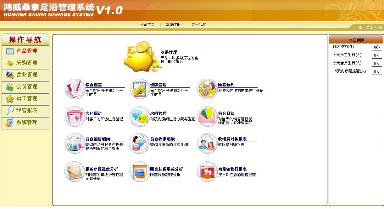 界面直观、操作简便 个性化的技师、钟房管理系统,简单实用 强大的会员体系、能为您提供多样化的促销方案 强大的库存系统,让您对物料的管理更得心应手 营业报表,决策分析