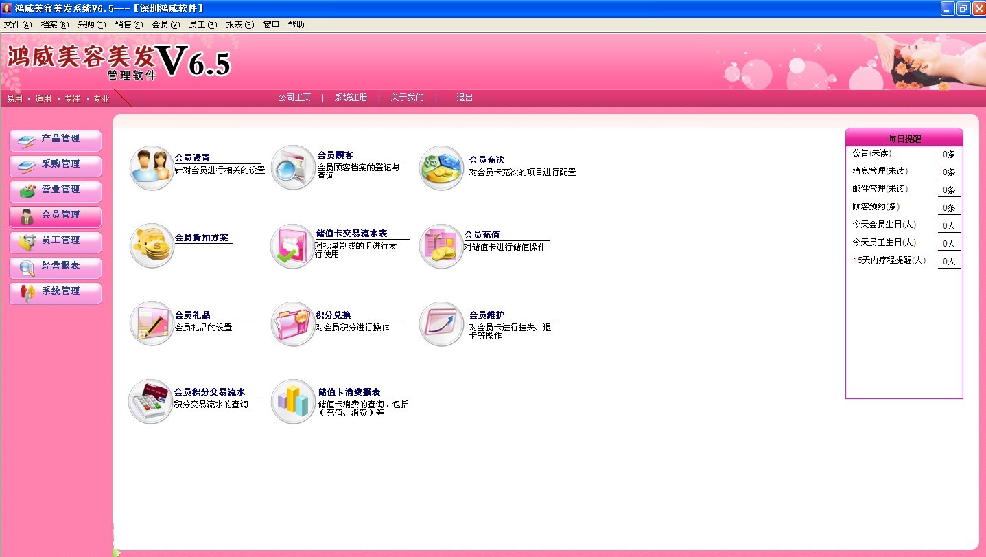 鸿威美容美发管理软件是主要应用于美发店、美发连锁店、美容院、美容院连锁机构、整形店、美甲店、美体店、美甲连锁、养生会所、女子美容馆进行会员管理、收银管理和连锁运营的最佳软件。
